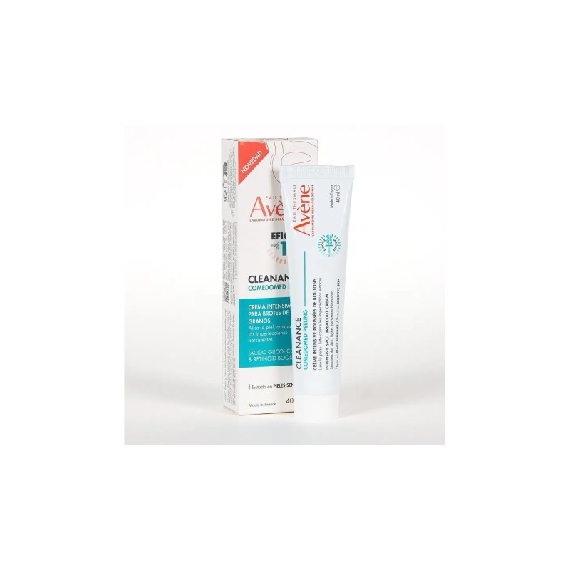 La crema comedomed peeling es el nuevo aliado en la lucha contra los brotes de acné. Ataca todas las imperfecciones visibles de las pieles con tendencia acneica con una fórmula única y ultraeficaz gracias a una combinación de activos dermatológicos. El ácido glicólico exfolia y estimula la renovación celular para un efecto piel nueva gracias a su acción queratolítica. Retinoid booster favorece la reabsorción de los granos y la reducción de las marcas residuales gracias a una combinación patentada** de retinal, la forma más eficaz de vitamina a, y comedoclastin™. Aplicar por la noche sobre el rostro limpio y seco en cuanto aparezcan las imperfecciones y hasta que desaparezcan, durante un máximo de 15 días de uso. Su textura cremosa permite que el producto se absorba rápidamente, dejando un acabado no graso en la piel.